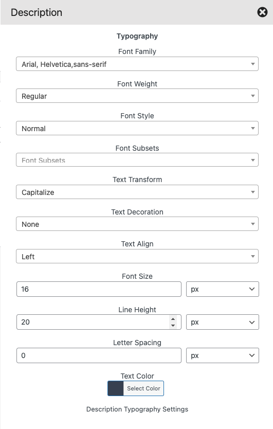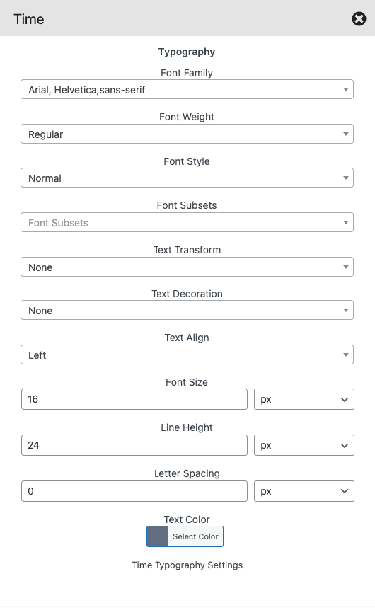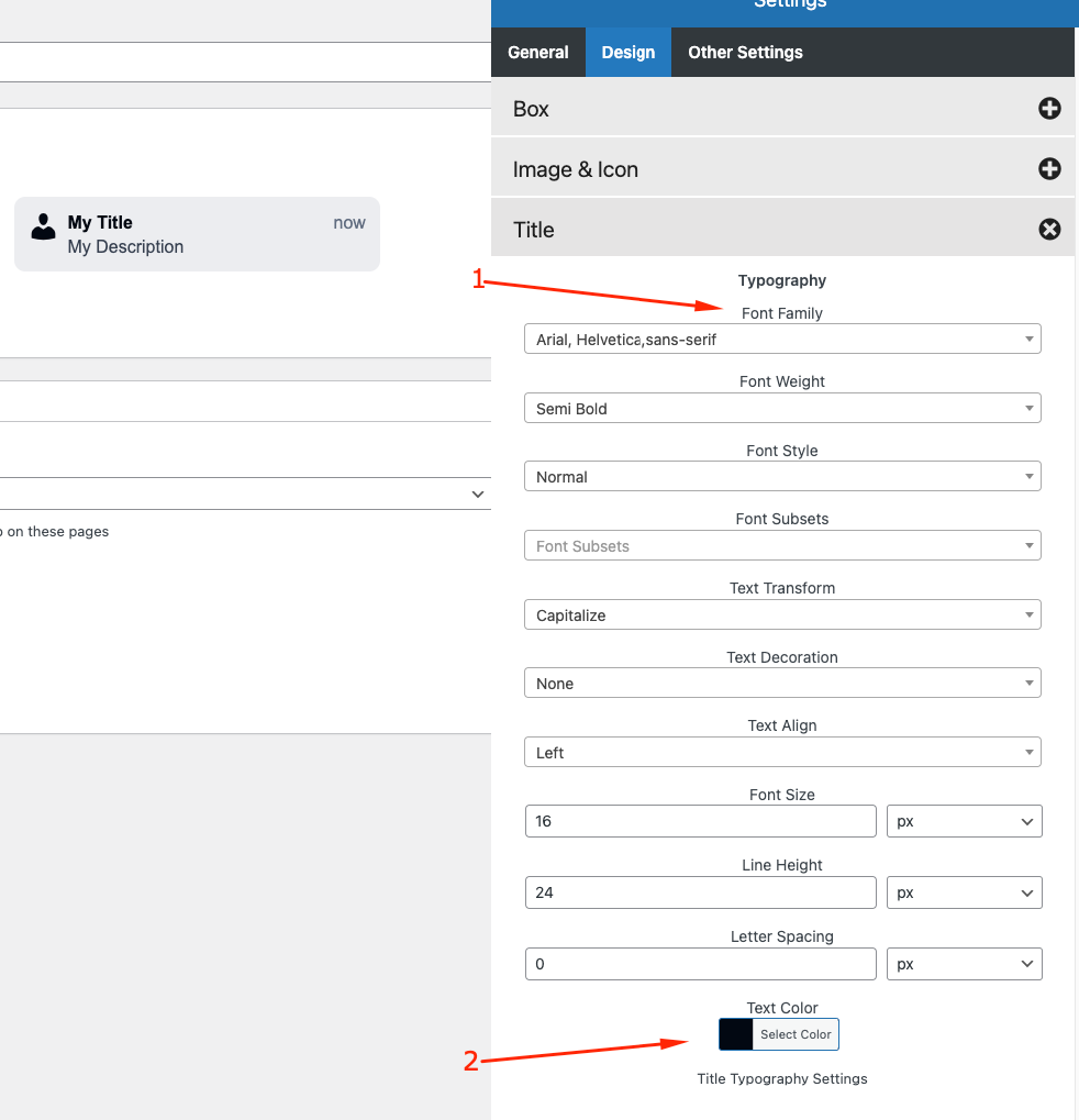 - This option, called Typography, allows you to change the title font and its styles. (Here, you can choose from standard fonts, Google Fonts, and any custom fonts uploaded via Divi (if available))