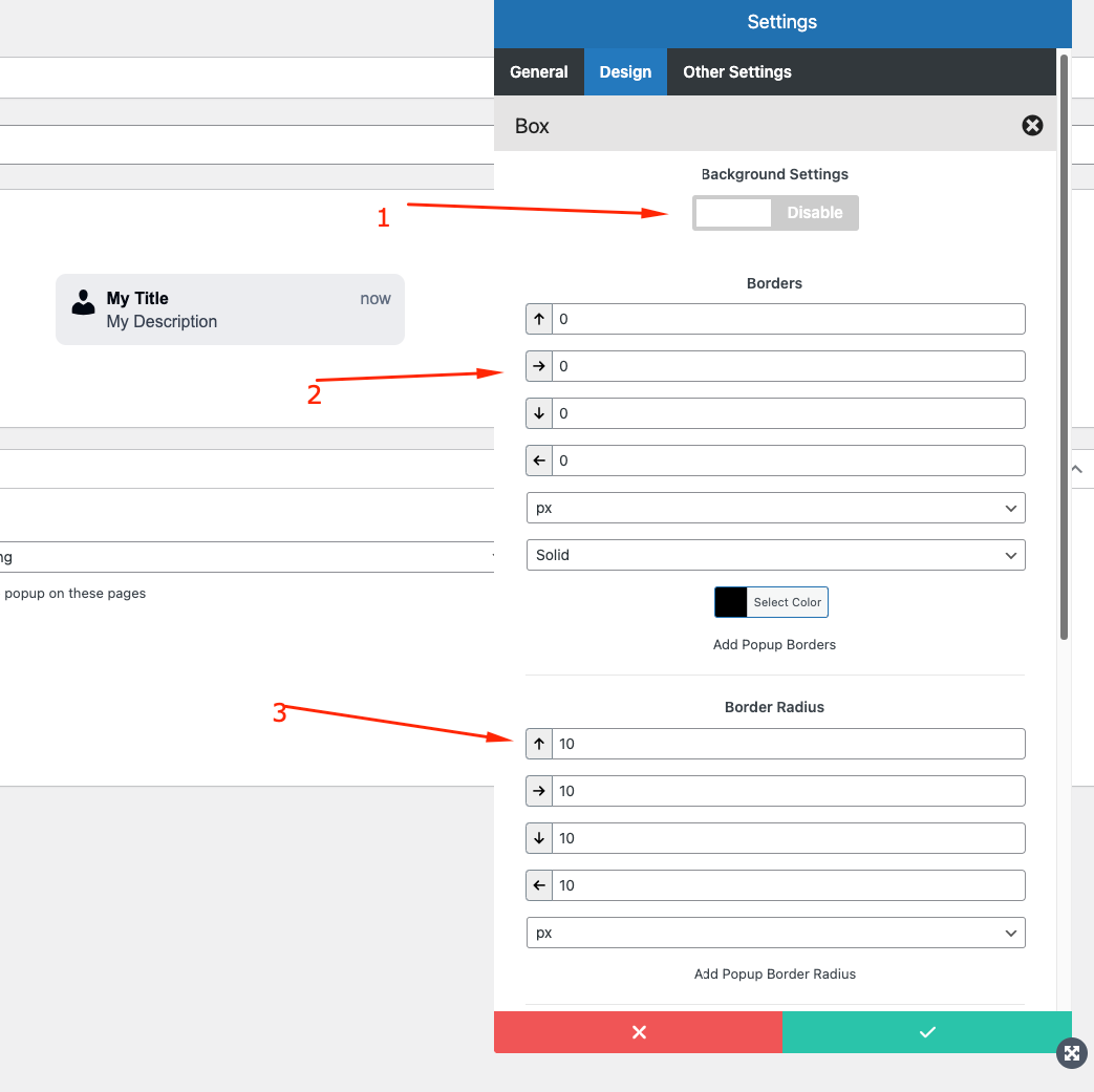 NOTE!!! – Most fields in the modal area will update in real-time in the preview area as you make changes.